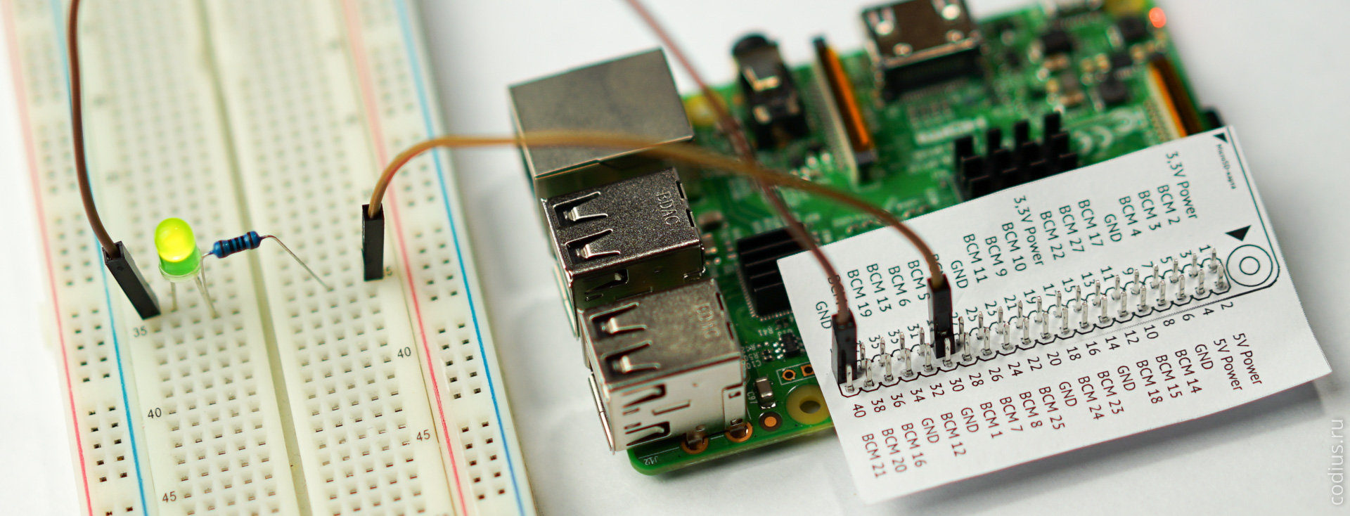 Вместо приобретения Т-образного шилда можно скачать и распечатать GPIO_mapping.pdf (97,0 KB) бумажную накладку на GPIO, чтобы можно было хоть как-то ориентироваться в распиновке разъема. |