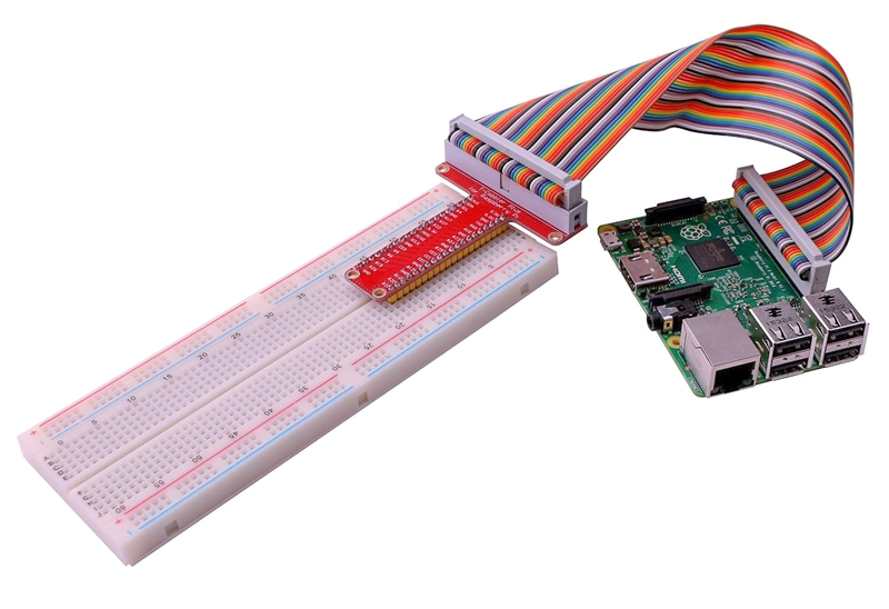 В подготовительных целях Для удобства работы с выходами GPIO рекомендуется приобрести Т-образный шилд со шлейфом для удобной работы с макетной платой: |