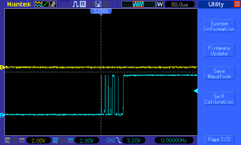 А вот так выглядит реальная осциллограмма, захваченная логическим анализатором и результат работы схемы: |
