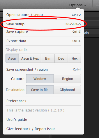 Помимо сохранения и экспорта самих полученных данных, также можно сохранять и использовать настройки, используемые в конкретном захвате данных: |
