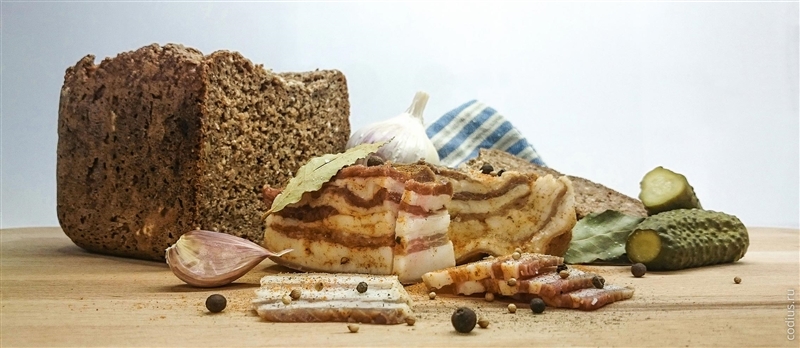 Кстати, сало на фото, перенесенного на картину, приготовлено по этому рецепту.