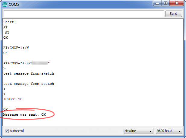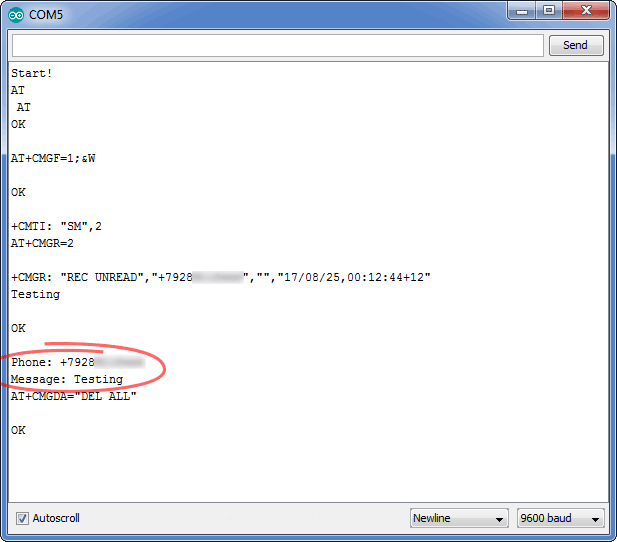 Ну а что произойдет, если МК пропустит незапрашиваемое уведомление о приходе SMS? Ему придется ждать прихода следующего сообщения, что является неприемлемым сценарием. И если будет принято сразу несколько сообщений — будет обработано только последнее. Для подстраховки от таких ситуаций необходимо ввести периодическую (например, раз в минуту) проверку наличия непрочитанных сообщений. В случае наличия таковых, каждое сообщение из списка будет обработано и удалено. Пример скетча приведен ниже в разделе об управлении по SMS. |