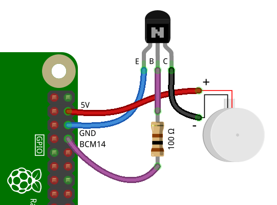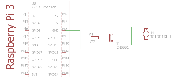 В данном примере используется NPN-транзистор 2N5551. Схема подключения следующая: |