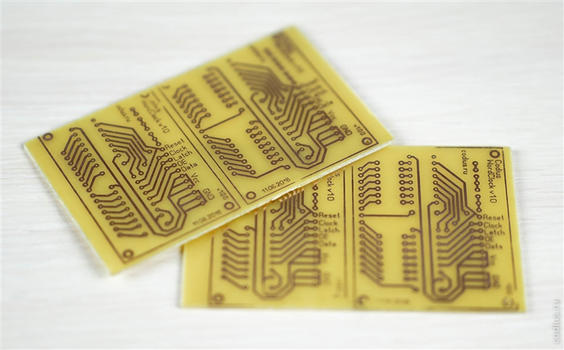 Изготавливать плату мы будем путем травления меди. В двух словах — на медную поверхность наносится защитный слой лазерного тонера, который защитит её в нужных местах во время травления. Таким образом на плате останутся только те участки (дорожки, контактные площадки), которые не подверглись химическому воздействию (были изолированы тонером).