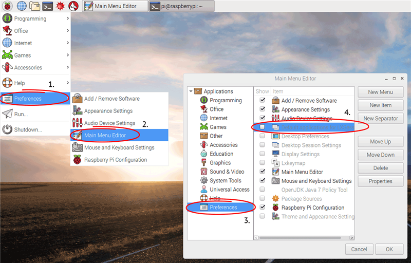 Сначала в редакторе главного меню, нужно добавить пункт Default applications for LXSession: |