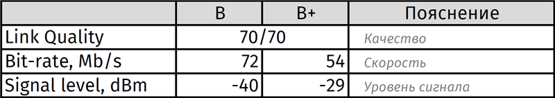 1 iwconfig Разница в значениях показателей приведена в таблице: Для отключения режима управления питанием Wi-Fi, необходимо выполнить команду: 1 sudo iwconfig wlan0 power off Вернуть обратно: 1 sudo iwconfig wlan0 power on |