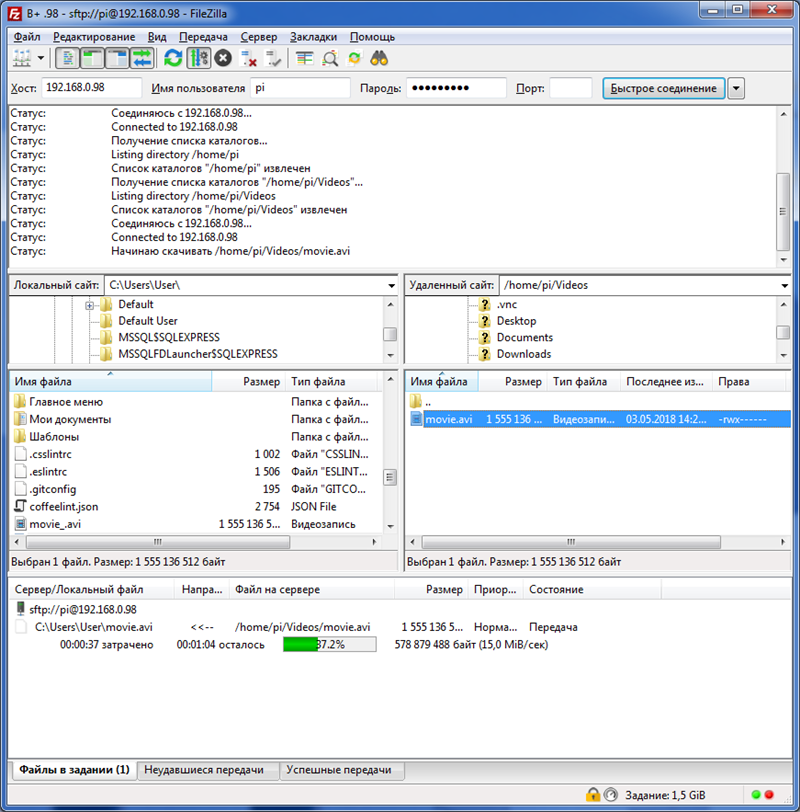 Как повторить тест?SCP с FreeSSHd. В данном примере копирование осуществляется с Raspberry Pi на Windows-компьютер и обратно по протоколу SCP, при помощи одноименной утилиты. |